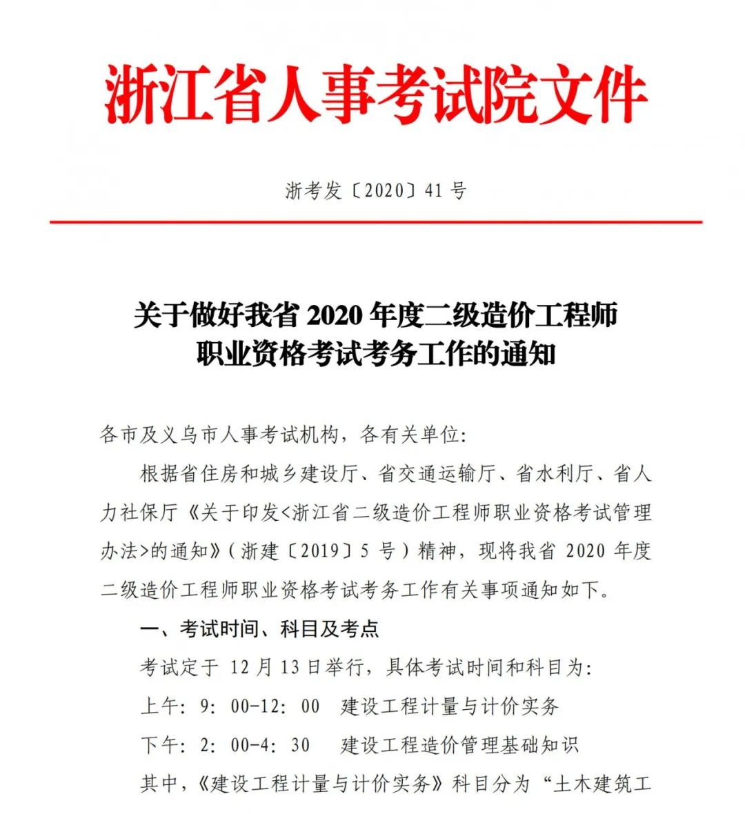 今年浙江省的二級(jí)造價(jià)師考試時(shí)間及內(nèi)容已經(jīng)公布!幫助大家提取了一些重要信息,快來(lái)看看吧!
